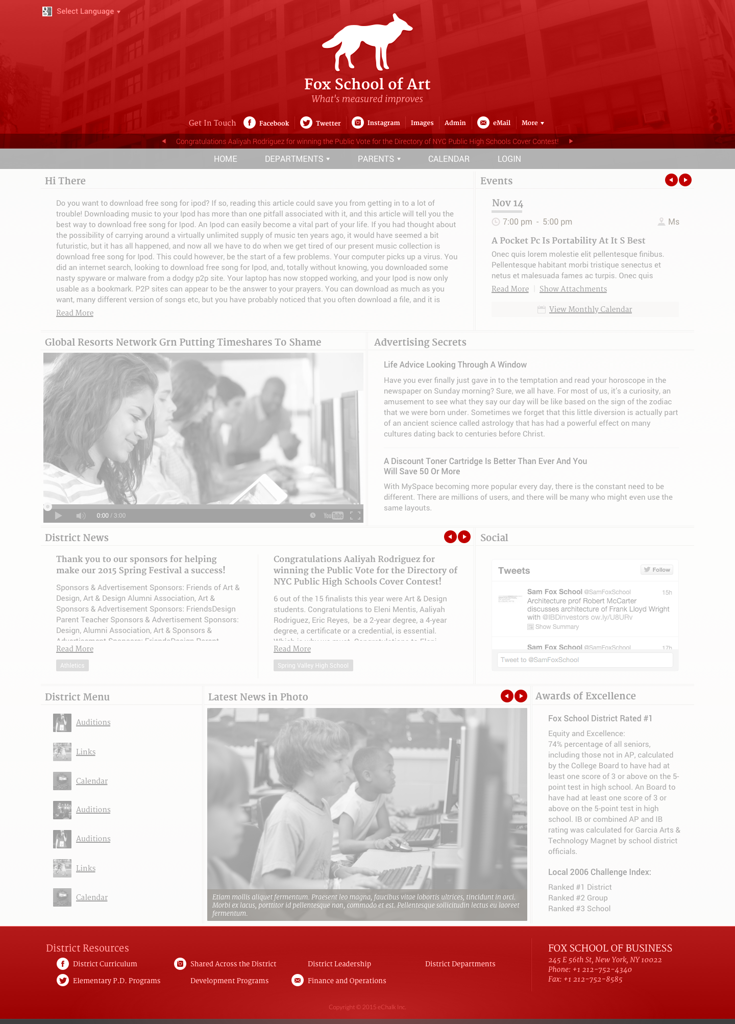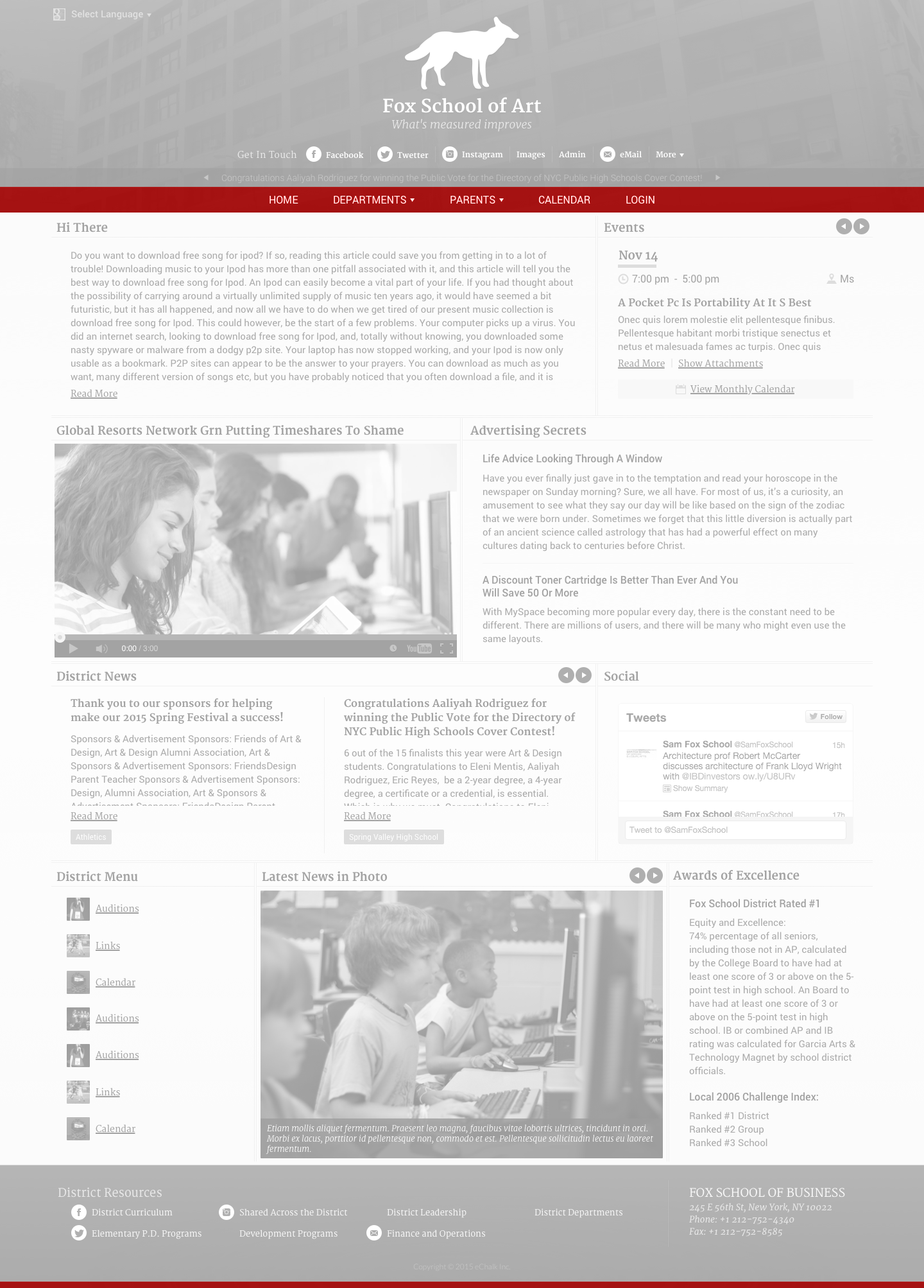 The News Theme is for the district or school that relies on the public site to get daily information out to the community in a text-heavy format that is easier to digest. Feed posts, events, and photo stories are presented in a compact newspaper-like layout and design. Like all eChalk themes, it is fully responsive and compatible with all devices.